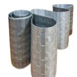 25.5 inch wide, 1 mm thick. Weighs 3.5 Kg/m² (about 15 pounds per 10 foot length). Edges are sharp.