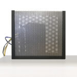 Now with a higher gauge aluminum shield the Router Shield 2 is more balanced with form and function. The chassis is black wrinkle powder coated steel which is strong and sturdy and provides a great fit for the shield. Now with less welds and seams this design not only looks good but functions much easier. With the cover off it is easy to manage the cable entry and setting up your router. Once you’re finished you simply slide the perforated aluminum cover into the chassis and now your environment is shielded against full strength router output.